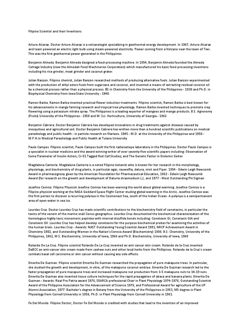 Filipino Scientist and Their Inventions | Philippines ... from imgv2-2-f.scribdassets.com Most importantly, he relishes spending time with his wife lisa and their children and grandchildren. Sometimes scientists discover a model of an early invention and from this model they can accurately tell us how old it is and where it came from. Their version was large with sharp e dges and studs and attached to share. We are providing this scientists and inventions list in pdf format too. Ramon barba invented practical flower induction treatments. Friends, here is the list of inventors and their inventions. Aşağıdaki list of scientists and their inventions pdf download kitaplar alfabetik sıraya göre listelenmektedir. Scientists and their inventions 22 genius inventors with their inventions who have changed our lives for good have you ever dreamed of becoming a great.